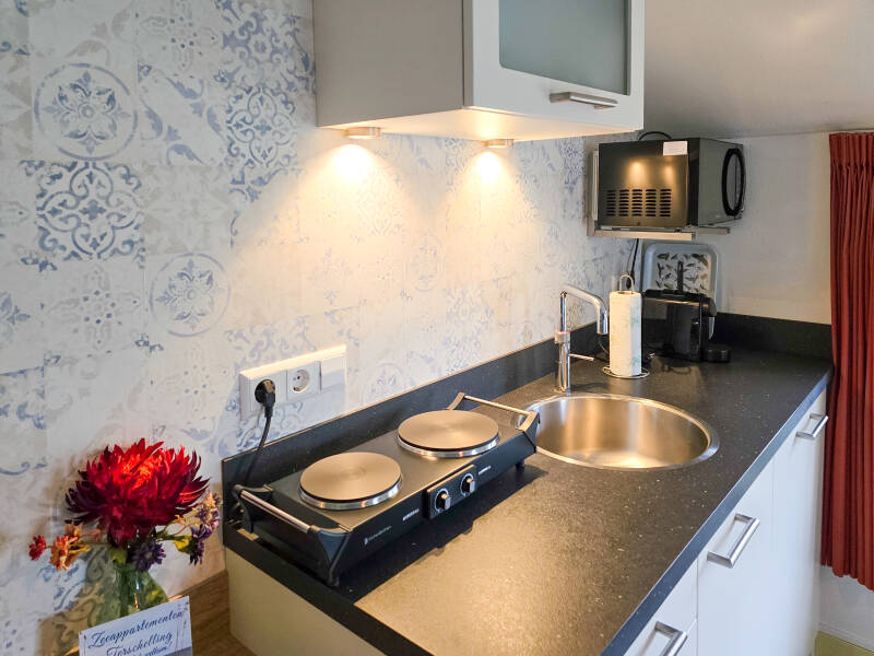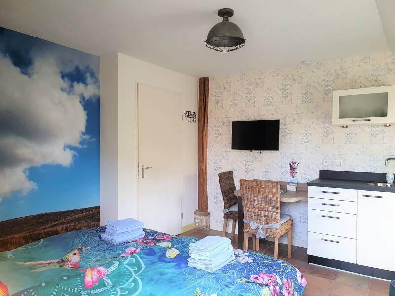 Zeeroos is een gezellige 2 persoon studio, met badkamer douche en toilet, een kitchenette met Quooker en combi magnetron, electrische kookplaatje, Nespresso koffie apparaat. In 2021 Is Zeeroos gerenoveerd. De studio beschikt over WIFI, interactieve TV en een kitchenette met koelkast en vriesvakje. Tevens een lekker terras en mag je gebruik maken van de grote omliggende tuin, dus altijd een zonnig plekje te vinden.